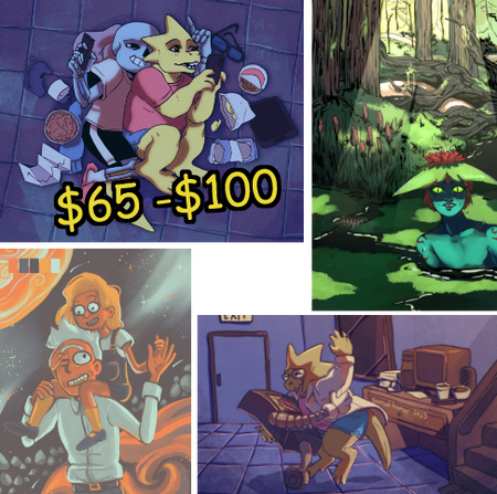 COMMISSION PROCESS⒈ send me an inquiry thru an ask, message, note, dm on the social media service you found me on (for example, tumblr). please provide an outline of the service you would like. i may ask you to provide references or ask for further clarification if you don’t include enough information in your inquiry before i accept or deny your inquiry.⒉ i will respond with whether i am accepting your commission. i do reserve the right to deny service for any reason however i will tell you up front.⒊ once i accept your commission i will draft a couple preliminary thumbnails for you to view and/or ask you more questions. once you choose the one you like best (or otherwise communicate to me the direction you want the piece to go into i will give you the price for the commission.⒋ if you would like to complete the purchase then 50% of the payment is required before i start the process. i will send you a paypal invoice.⒌ after the deposit is paid i will start on the commission. depending on level of complexity i may reach out to touch base with you more or less often. normally i will reach out at the refined sketch stage and line art or flats stages to make sure the piece is headed in a direction you want.⒍ you are definitely encouraged to check in more often if you would like, i will give updates as long as i am able to. any preview images will be watermarked and low quality.⒎ i do accept revision requests at the thumbnail and sketching phase, please give me all your input for how you want the piece to go. i can only do minor revisions as the piece goes on.⒏ i will send you a watermarked preview version of the final render for you to approve. the remaining balance of the piece must be paid at this time and then i will send you the unwatermarked image file in .jpg, .png, .bmp, .tiff, or .tga, though i will default to .png unless otherwise requested.